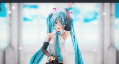 スカートをたくし上げてパンツもマ〇コも見せながら踊るミク!