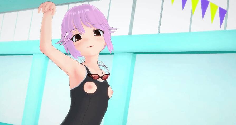ミニスカスク水、穴が開いたエロ衣装で踊る!