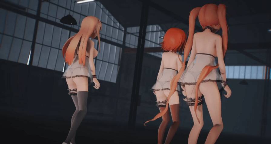 おっぱい丸出しにしてえっちなお尻を見せながら踊る三人!